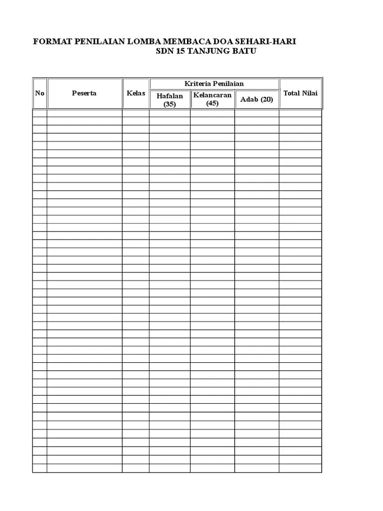 Format penilaian lomba mtq contoh blangko nilai pontren com.